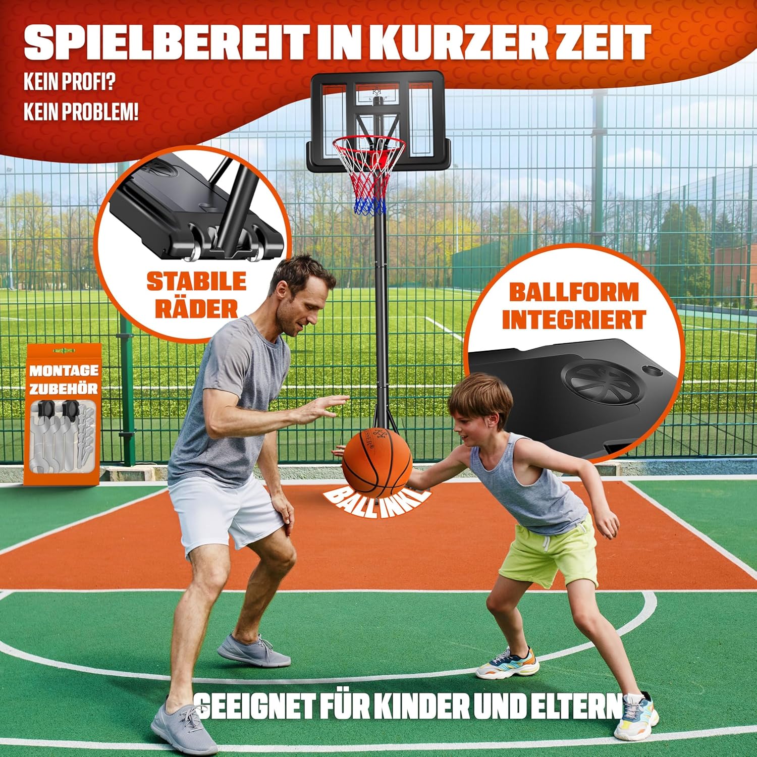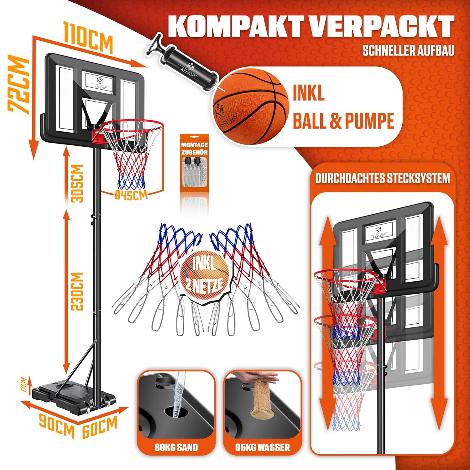 - 1 x KESSER® Basketball‑Hoop (Stand mit Rädern)
