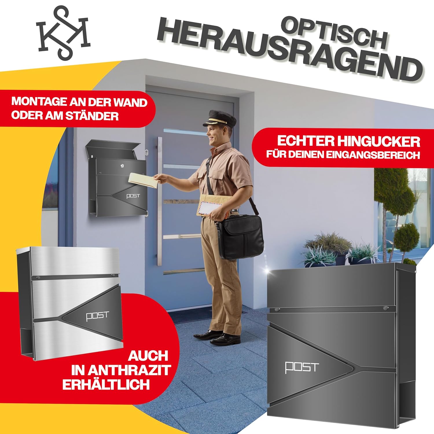 Beim ersten Blick auf das Kesser® Postfach ist sofort die hochwertige Verarbeitung erkennbar. Das klare, moderne Profil, kombiniert mit dem eleganten Anthrazit, verleiht jedem Eingang einen Hauch von Luxus. Doch das Design ist mehr als nur ein ästhetischer Blickfang – es ist ein Versprechen für Langlebigkeit, Sicherheit und Komfort. Das Postfach ist nicht nur ein Aufbewahrungsort, sondern ein zentraler Bestandteil der Hausorganisation, der die tägliche Routine erleichtert und gleichzeitig das Zuhause stilvoll abrundet.