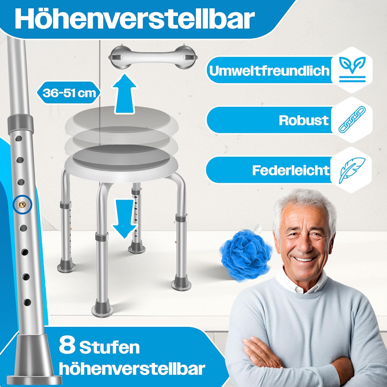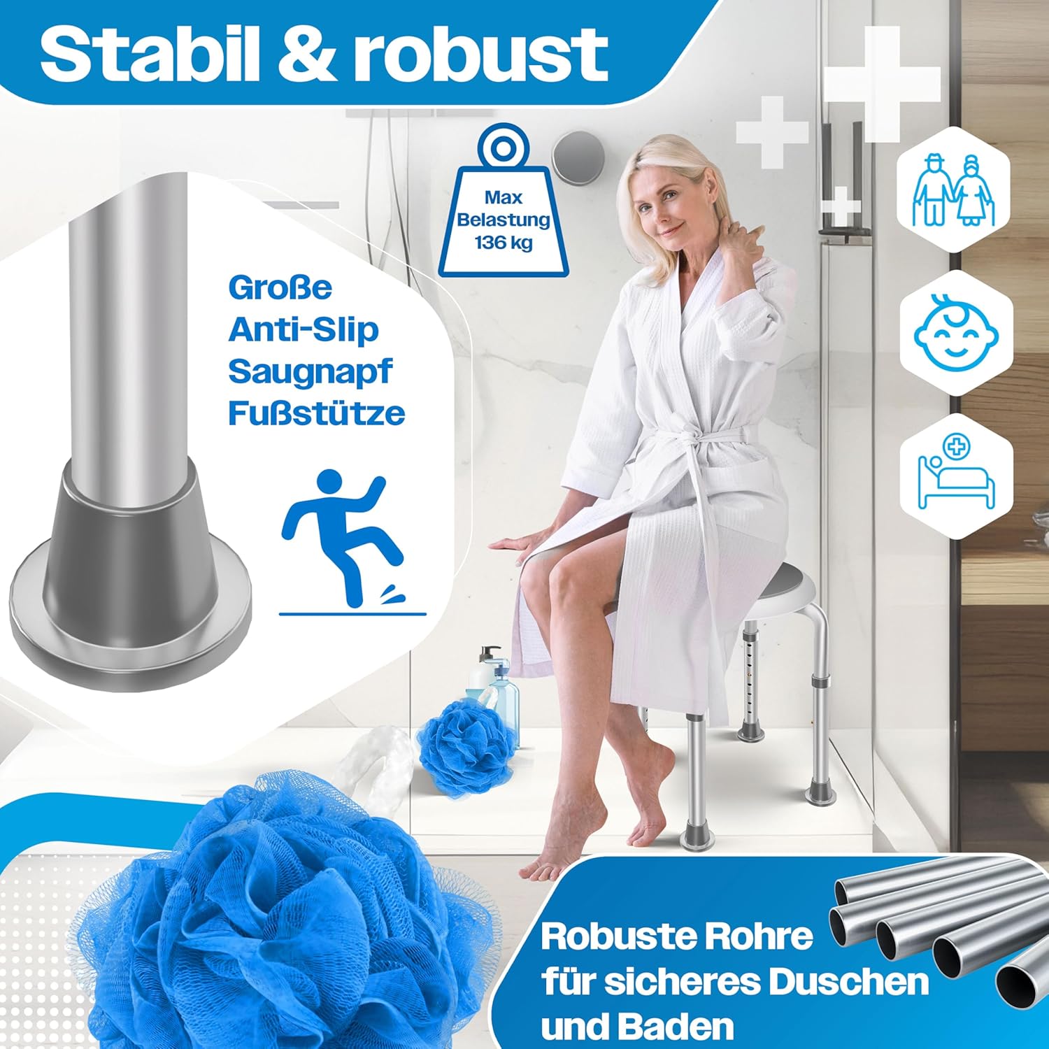 • Senioren & Pflegebedürftige: Für die ältere Generation, die im Duschbereich mehr Stabilität benötigt, bietet der verstellbare Sitz eine sichere Sitzposition, ohne dass ein Handtuch oder ein Duschsitz auf dem Boden wackelt.
