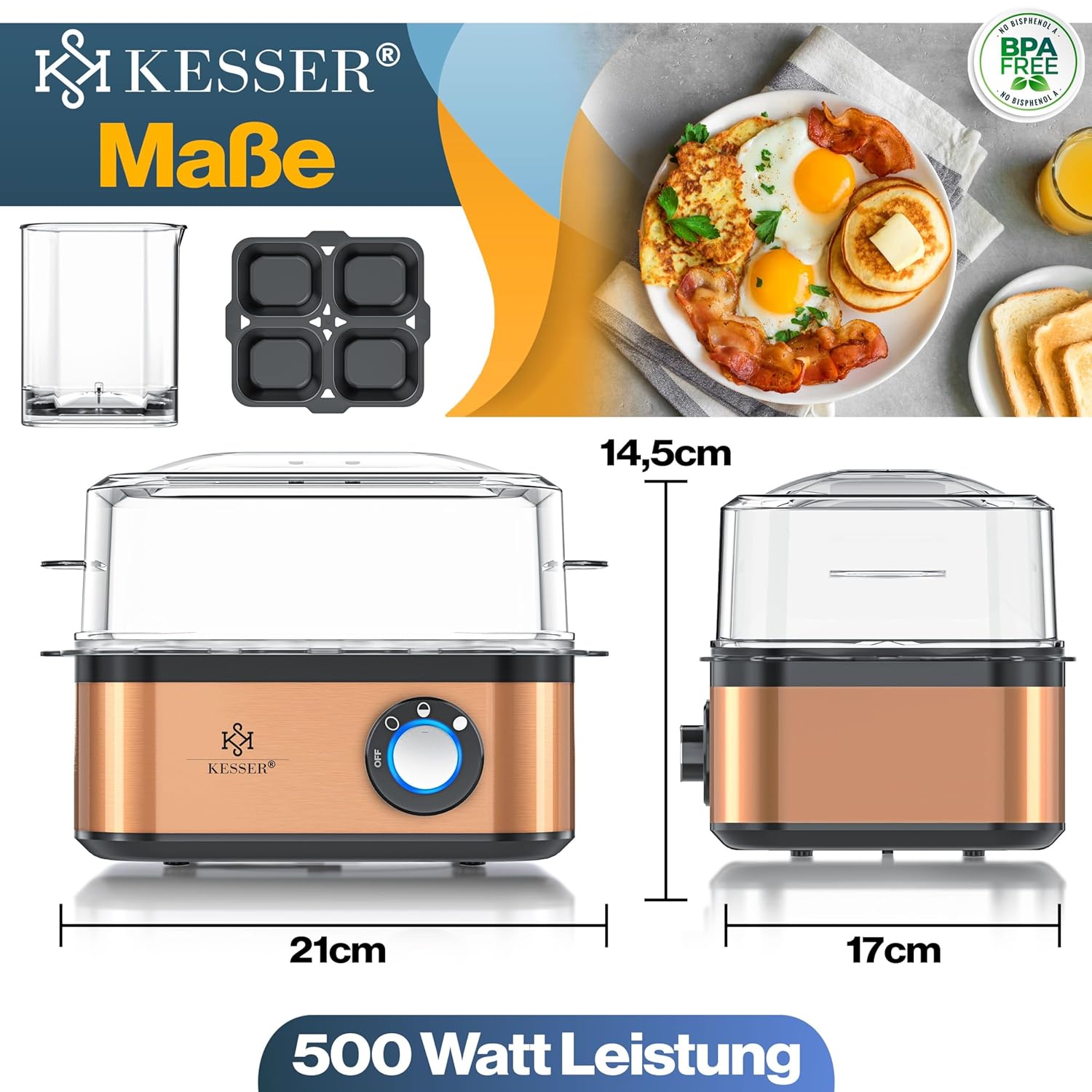 Gönnen Sie sich und Ihrer Familie das Beste: ein Gerät, das Ihre täglichen Mahlzeiten erleichtert, Ihre Zeit spart und Ihnen das Herz an der Hand hält – der KESSER Egg Cooker, Ihr neuer Küchenfreund.