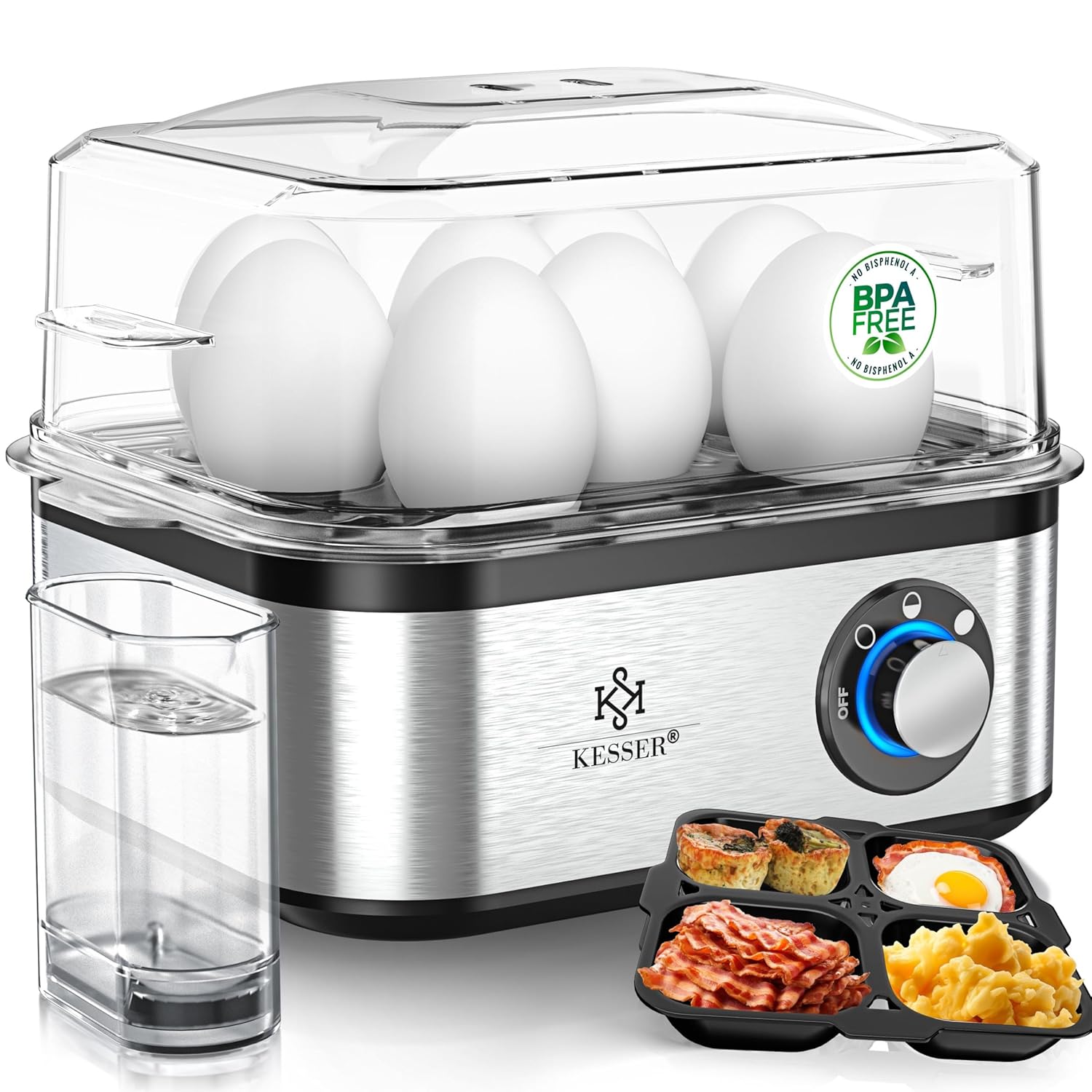 KESSER Egg Cooker – 1 bis 8 Eier, 500 W, Edelstahl, Keep‑Warm‑Funktion, LED‑Schalter, drei Kochstufen, BPA‑frei & spülmaschinenfest