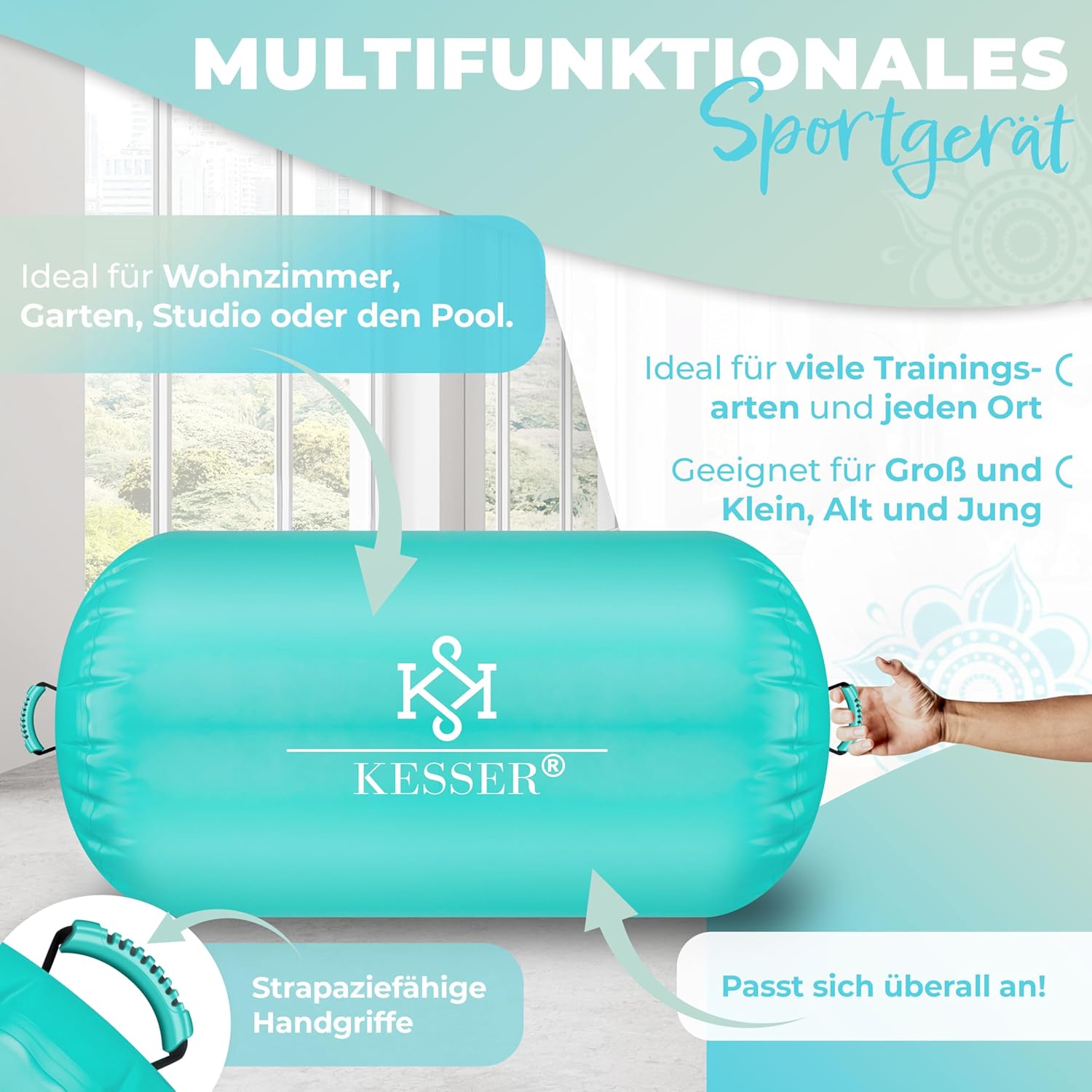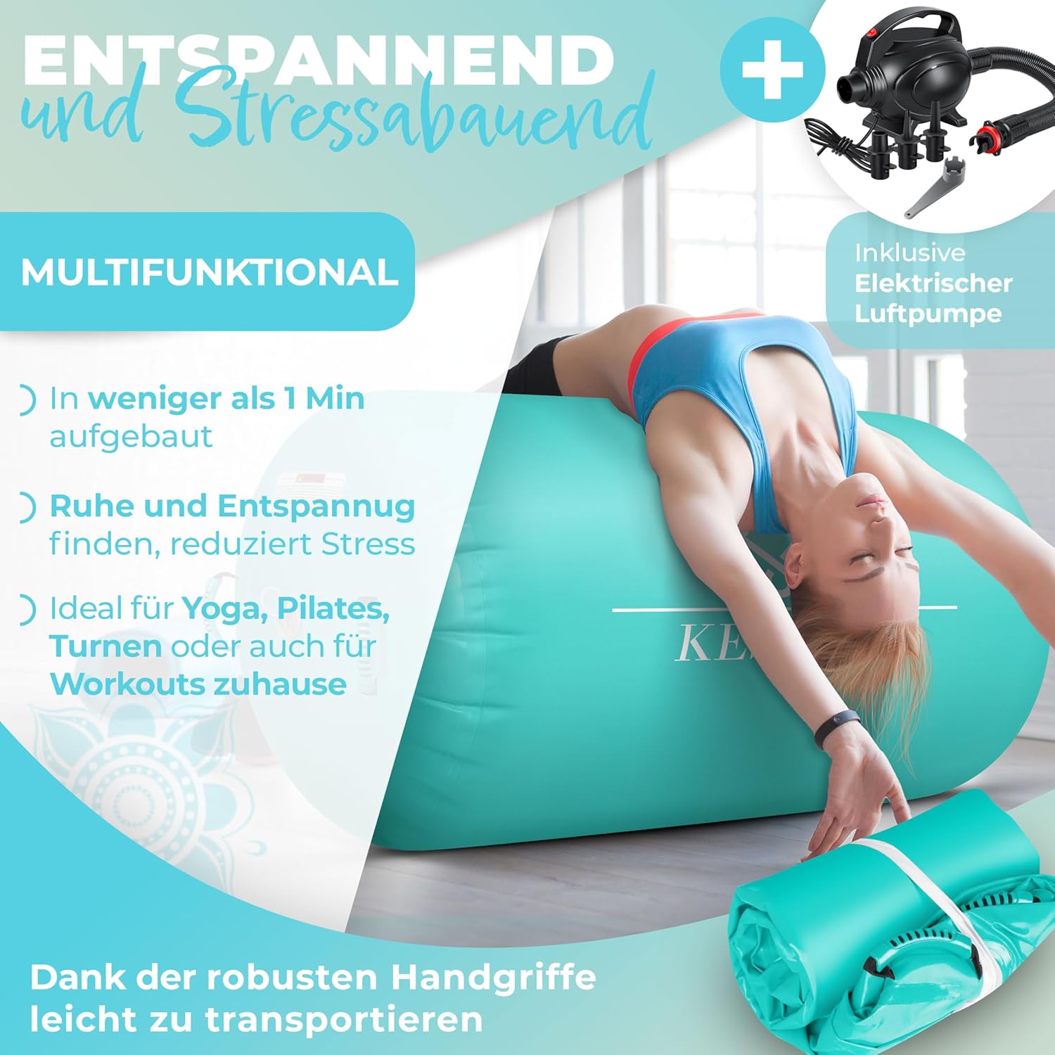 KESSER® Air Roll Airtrack – Der ultimative, luftgefüllte Trainings- und Entspannungsrollkörper für Zuhause, Studio und Outdoor