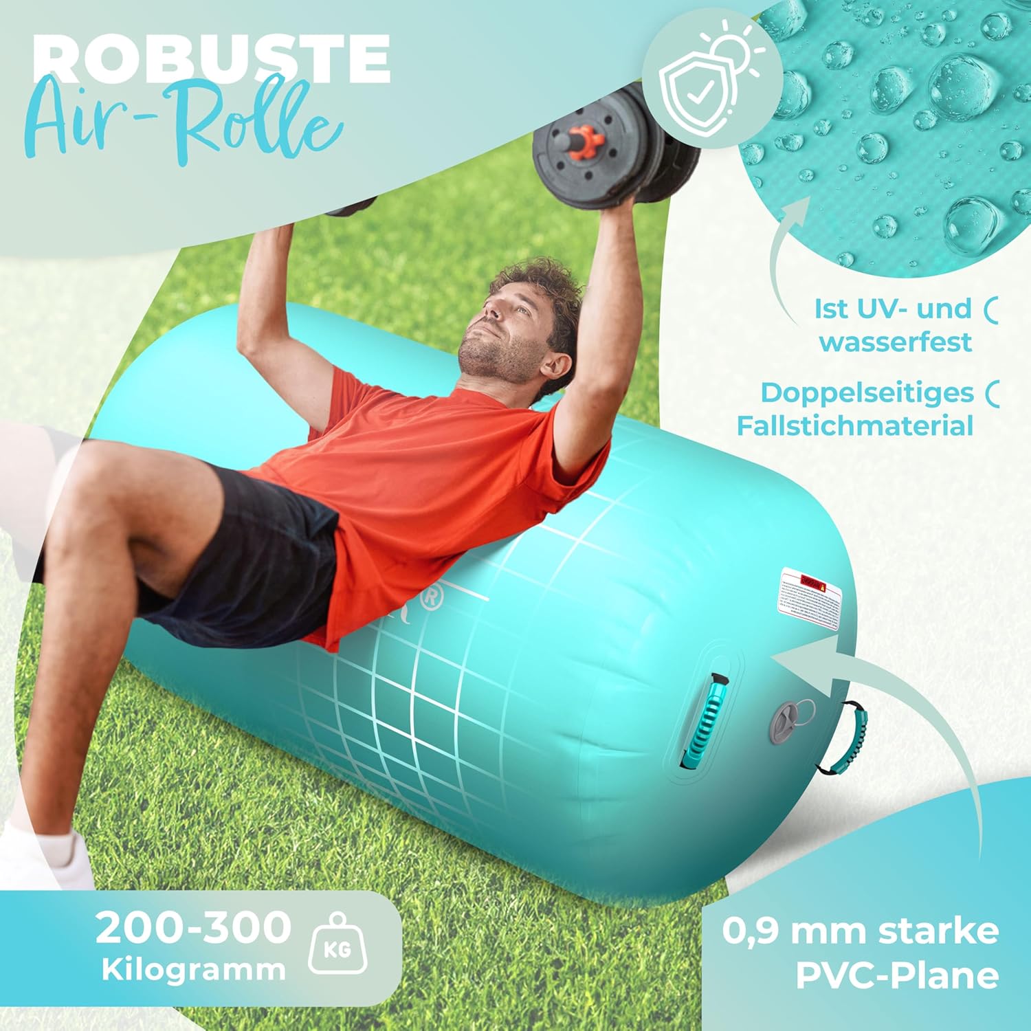 Der Air Roll trägt eine Belastungsfähigkeit von 200–300 kg, was ihn für Familien mit unterschiedlichen Körpergewichten geeignet macht. Dank der dicken, UV‑beständigen PVC‑Schicht bleibt die Luftfüllung auch nach 72 Stunden Training fest, ohne dass Sie sich Sorgen um ein erneutes Aufpumpen machen müssen.