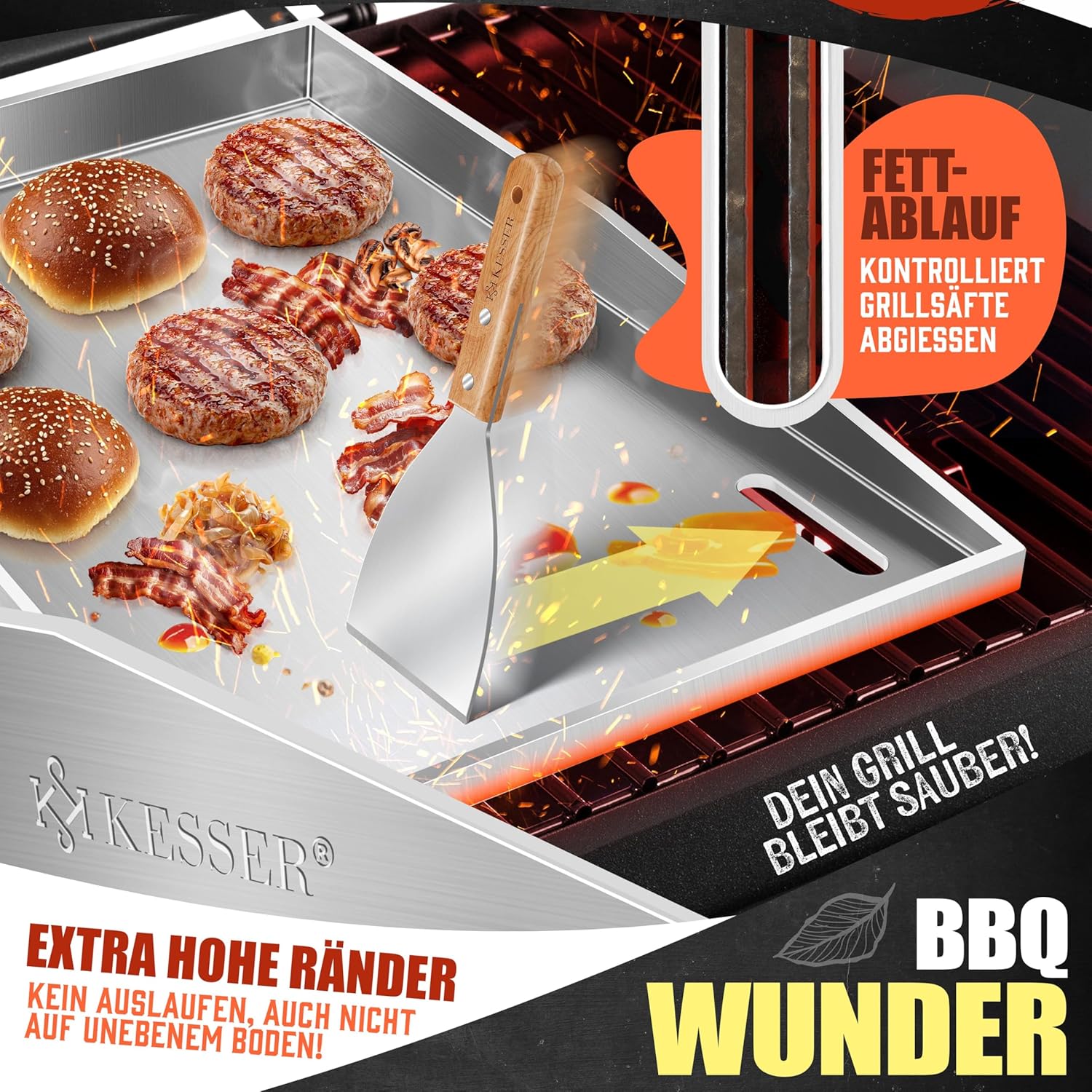 Die KESSER Plancha ist mehr als nur ein robustes Gitter. Sie wurde mit durchdachten Details entwickelt, die Ihr Grillerlebnis erleichtern.