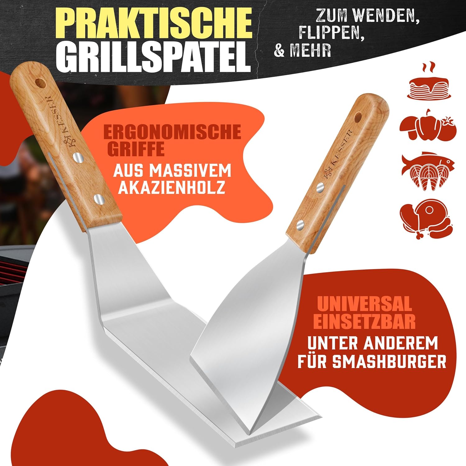 - Vielseitige Zubehörteile: Das Set beinhaltet zwei ergonomisch geformte Spachteln aus massiver Acacia-Holz, einen universellen Grillschutz, ein Teflon‑Matte (max. 260 °C) sowie ein Rezeptbuch, das Ihre kreativen Grillideen beflügelt.